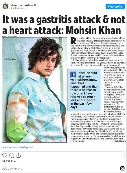 Mohsin has since emphasised that it was a gastritis attack, though. In an interview with an Indian publication, Mohsin clarified that the misunderstanding sprang from a grammatical mistake made in an earlier interview. His original intention was to mention that he had suffered a mild case of gastritis in December of last year, which might resemble signs of a heart attack, such as pain in the chest and abdomen. The actor informed supporters that his health is currently okay.