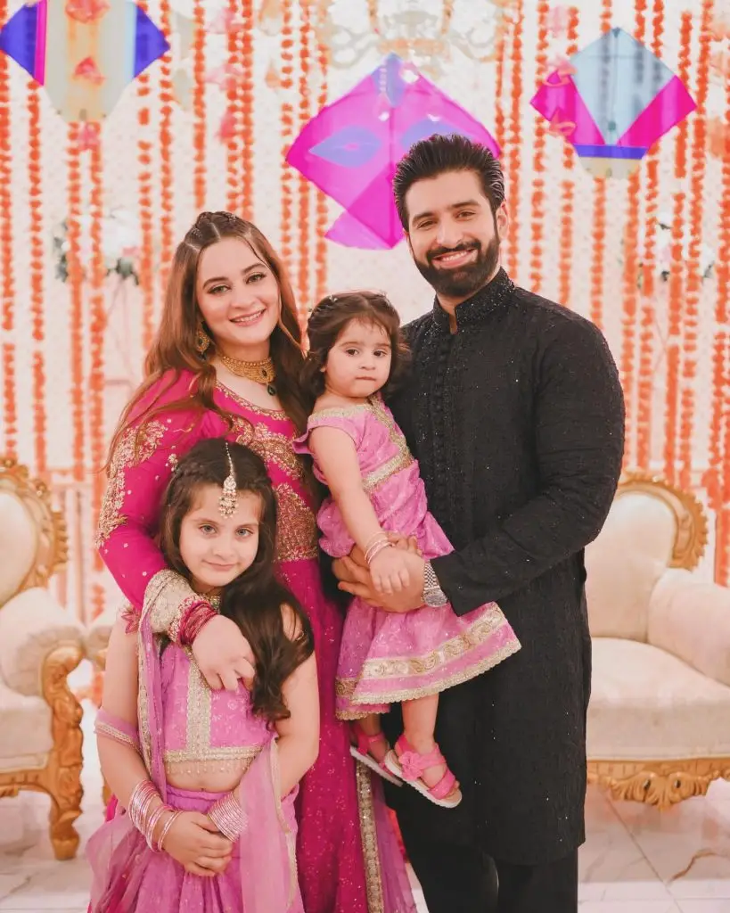 Aiman and Muneeb’s love story has been admired since day one. They got married young and have always stood by each other, building a home full of love, laughter, and beautiful traditions. Their daughters, Amal and Miral, are often featured in their Instagram posts, bringing joy to millions of followers.