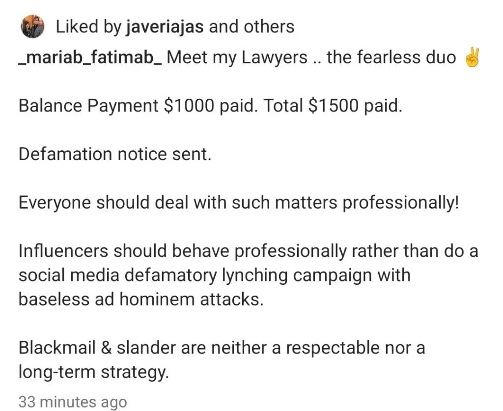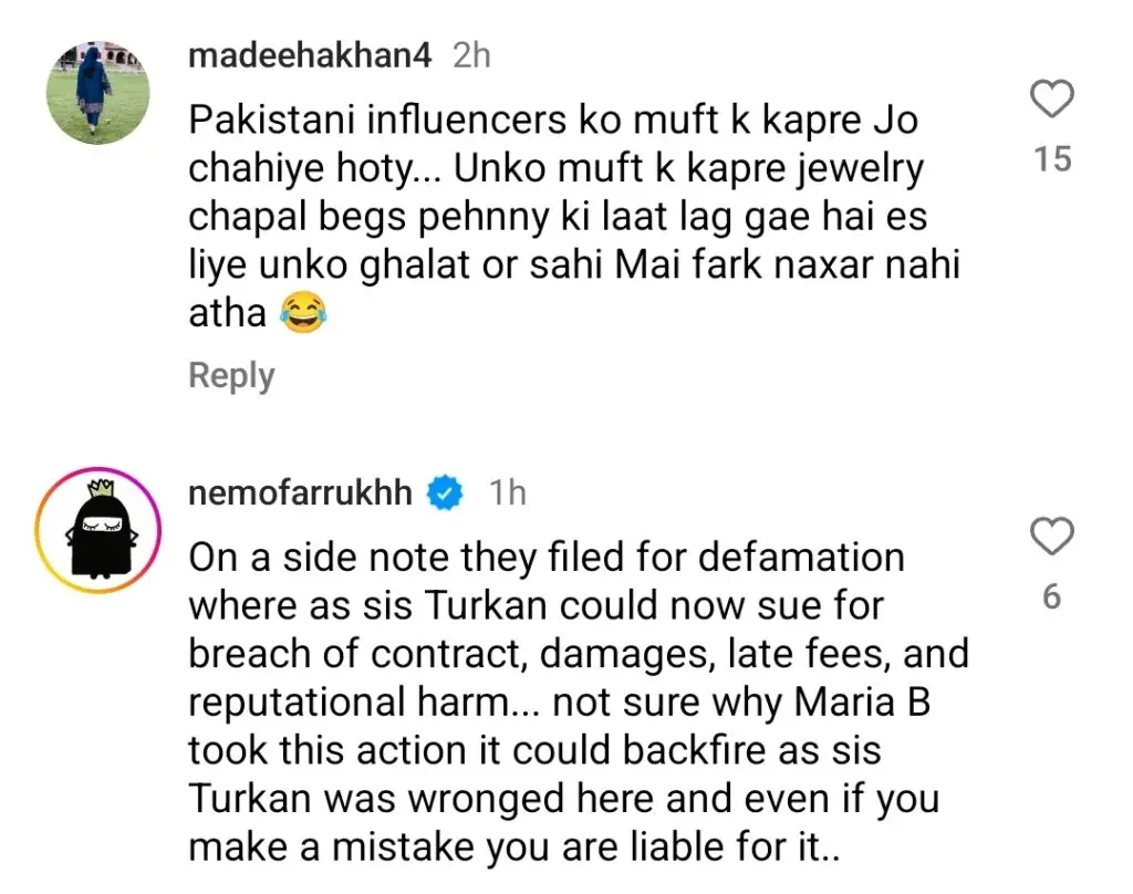 Following Maria B’s post, comments were turned off to prevent further public debate under her announcement. Nevertheless, Maria has been receiving support from Pakistani influencers, loyal customers, and friends who believe she handled the situation appropriately.