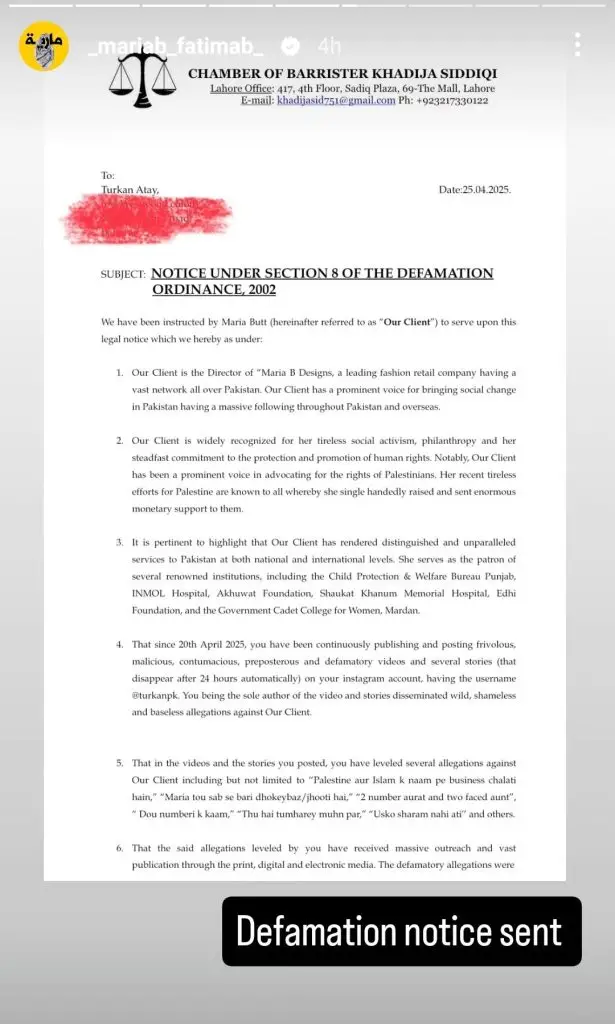 Alongside this announcement, Maria B also shared that she had taken legal action by sending a legal notice to Türkan Atay. She accused Türkan of defamation and using inappropriate language towards her brand in the influencer’s social media videos. Maria even posed confidently with her young team of lawyers, signaling that she is ready to defend her brand’s reputation through legal means if necessary.