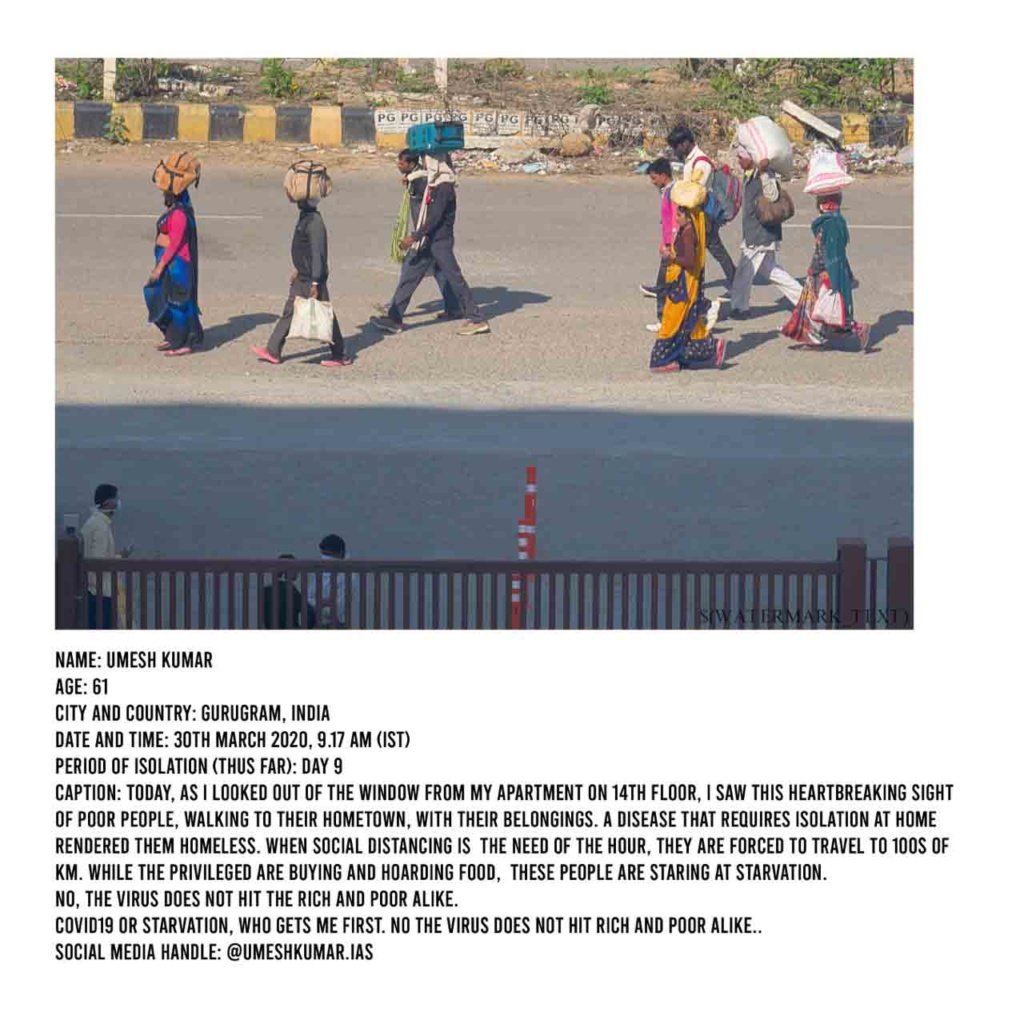 Photographs of the many acts of philanthropy from local private organisations, to help those in need, have also been submitted. The responsibility to provide for the growing need for food and methods of sanitisation for the needy has been undertaken by citizens alike.