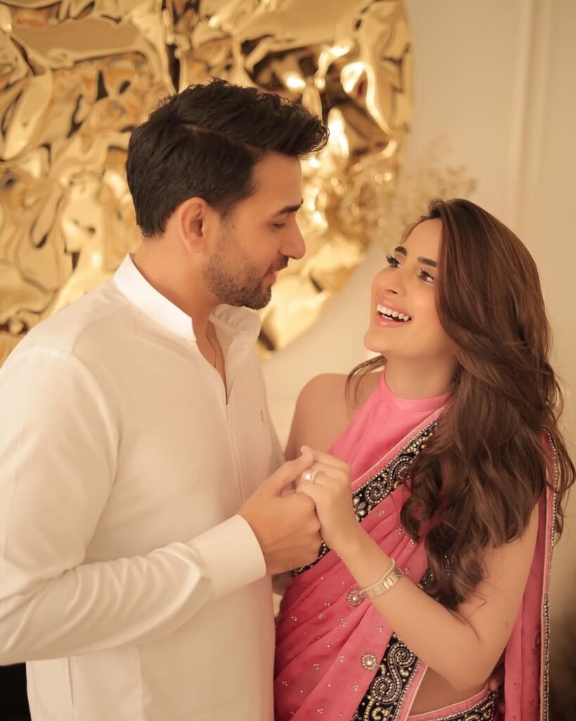 The newlyweds, Saboor Aly and Ali Ansari, made their Eid extra special with beautiful couple portraits and a gathering of close friends.