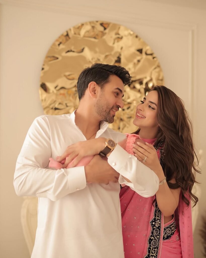 Sajal Aly kept it minimal yet stylish, wearing a traditional outfit that complemented her natural beauty. Her soulful Eid wishes and serene pictures added an elegant touch to the celebrations.